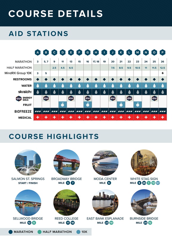 IMPORTANT: Naito Pkwy must be cleared of all runners and spectators by 6:45AM. Once the Half Marathon begins, no one may cross Naito Pkwy until a safe break between runners, as the course loops back onto Naito Pkwy at Mile 1.