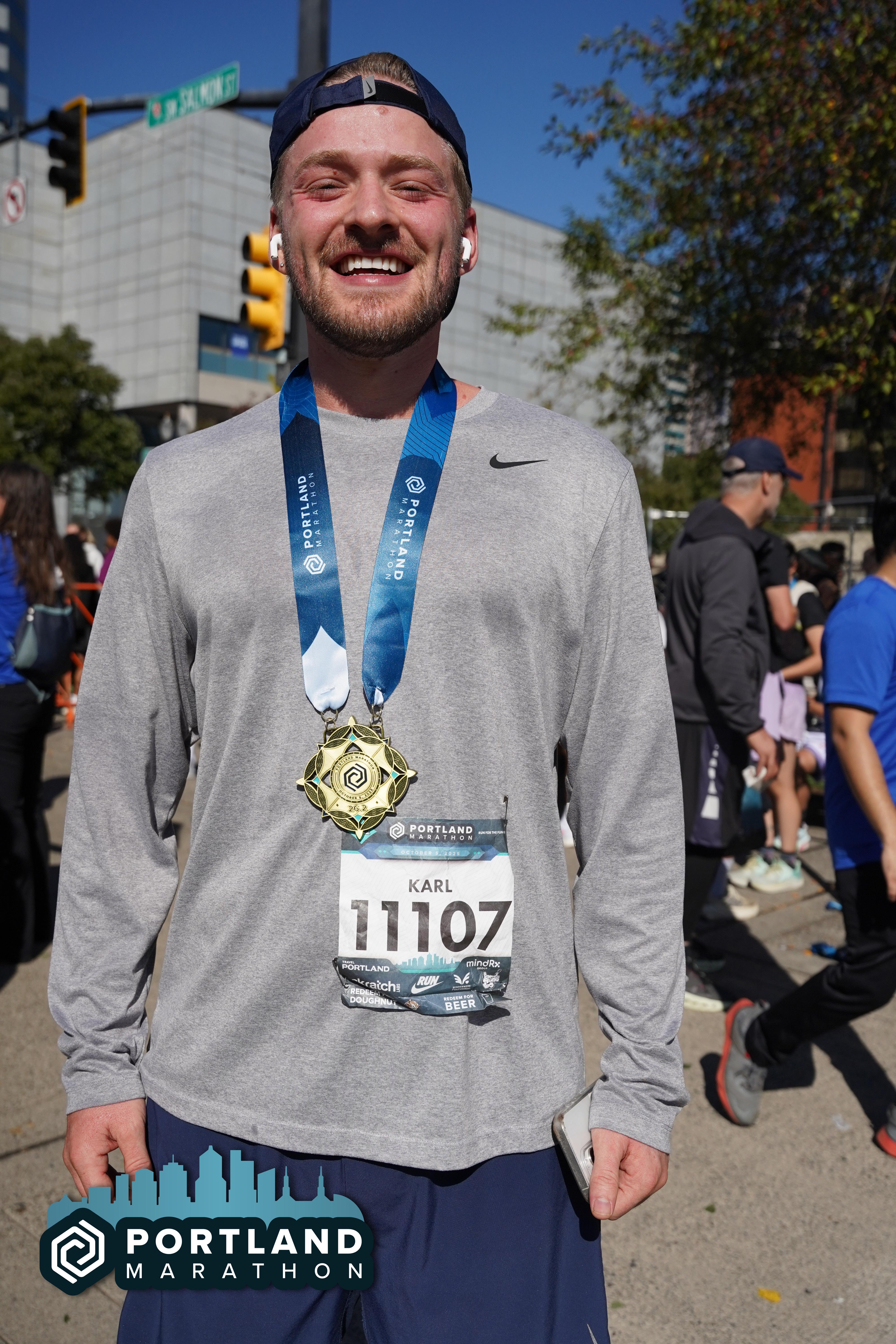 Date: Oct. 5, 2025 Participant: Karl Halvorson #11107 Race: 2025 Portland Marathon Distance: 26.2 miles