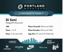Date: Oct. 5, 2025 Participant: Di Soni #22335 Race: 2025 Portland 10K MindRX Group Distance: 6.2 miles