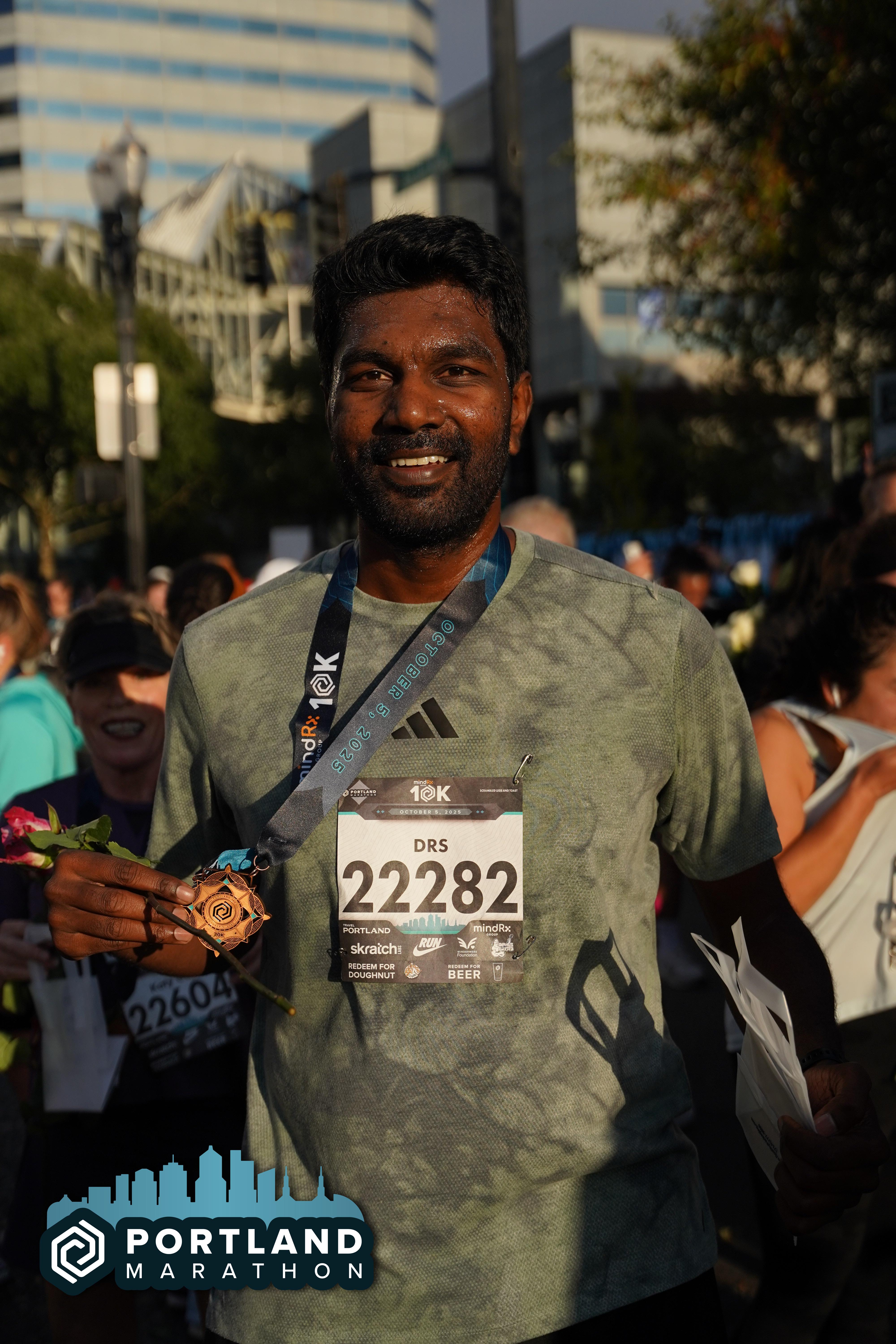 Date: Oct. 5, 2025 Participant: Dhanraj Selvaraj #22282 Race: 2025 Portland 10K MindRX Group Distance: 6.2 miles