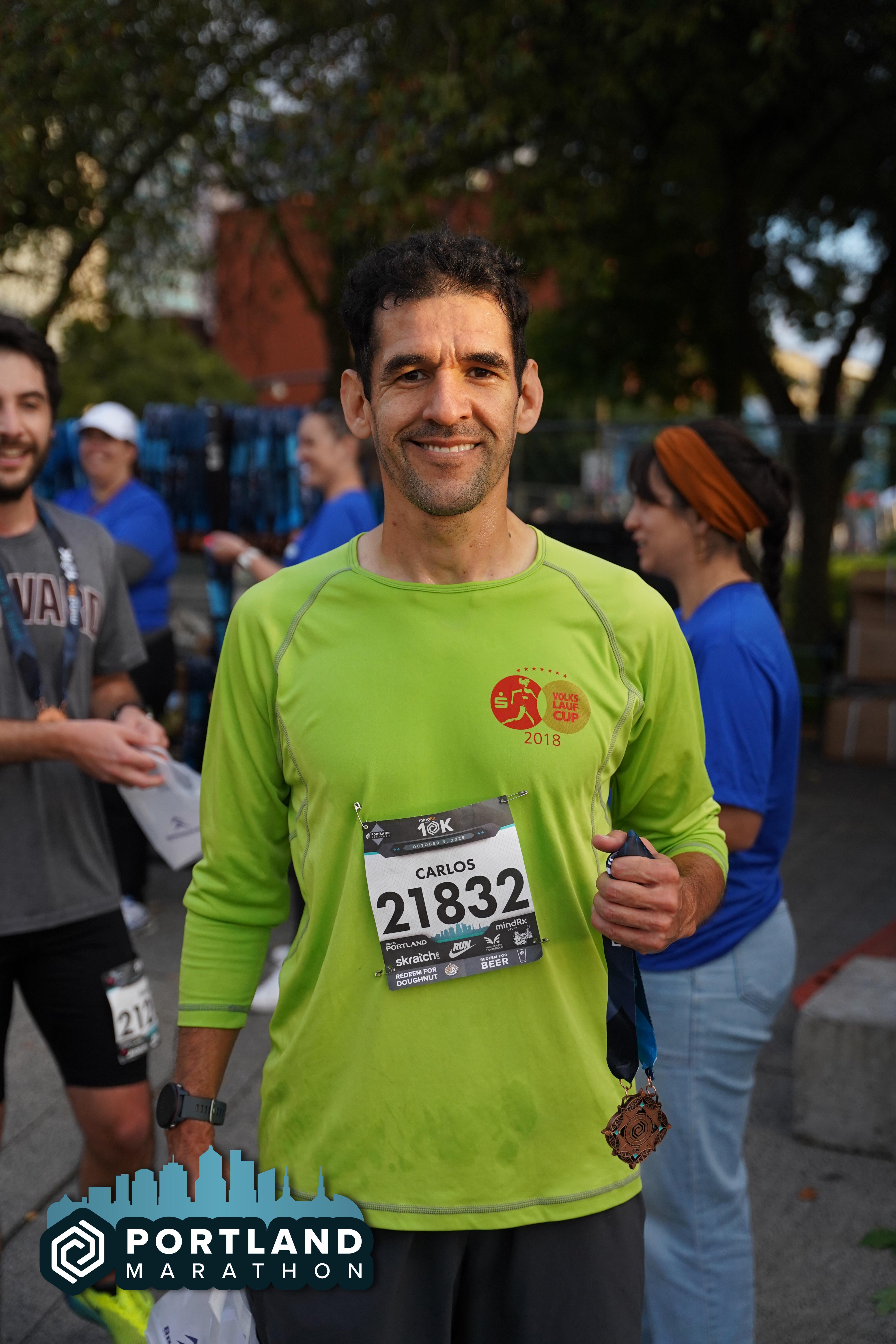 Date: Oct. 5, 2025 Participant: Carlos Lopez #21832 Race: 2025 Portland 10K MindRX Group Distance: 6.2 miles